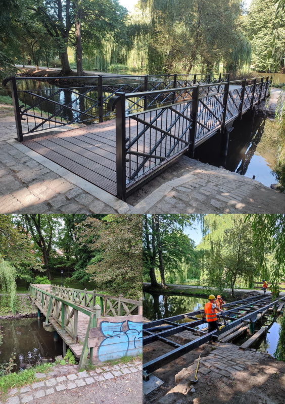 W Koszalinie oddano do użytku nową kładkę dla pieszych w Parku Książąt Pomorskich. Inwestycję zrealizowała firma MARBRO Sp. z o.o. z Gdańska jako główny wykonawca, a nasza spółka Techconcept miała przyjemność uczestniczyć w tym projekcie. Wykonaliśmy konstrukcję nośną stalową oraz ozdobne bariery, które nadają obiektowi charakter i zapewniają bezpieczeństwo użytkownikom. Kładka o długości około 14 metrów i szerokości 2,7 metra harmonijnie wpisuje się w otoczenie dzięki połączeniu stali z kompozytowym pomostem w kolorze naturalnego drewna. Jesteśmy dumni ze współpracy z firmą Marbro Sp. z o.o. i z tego, że mogliśmy pozostawić po sobie trwały ślad w przestrzeni Koszalina. To projekt, który łączy funkcjonalność, estetykę i nowoczesne rozwiązania, a jednocześnie wzbogaca przestrzeń publiczną miasta.